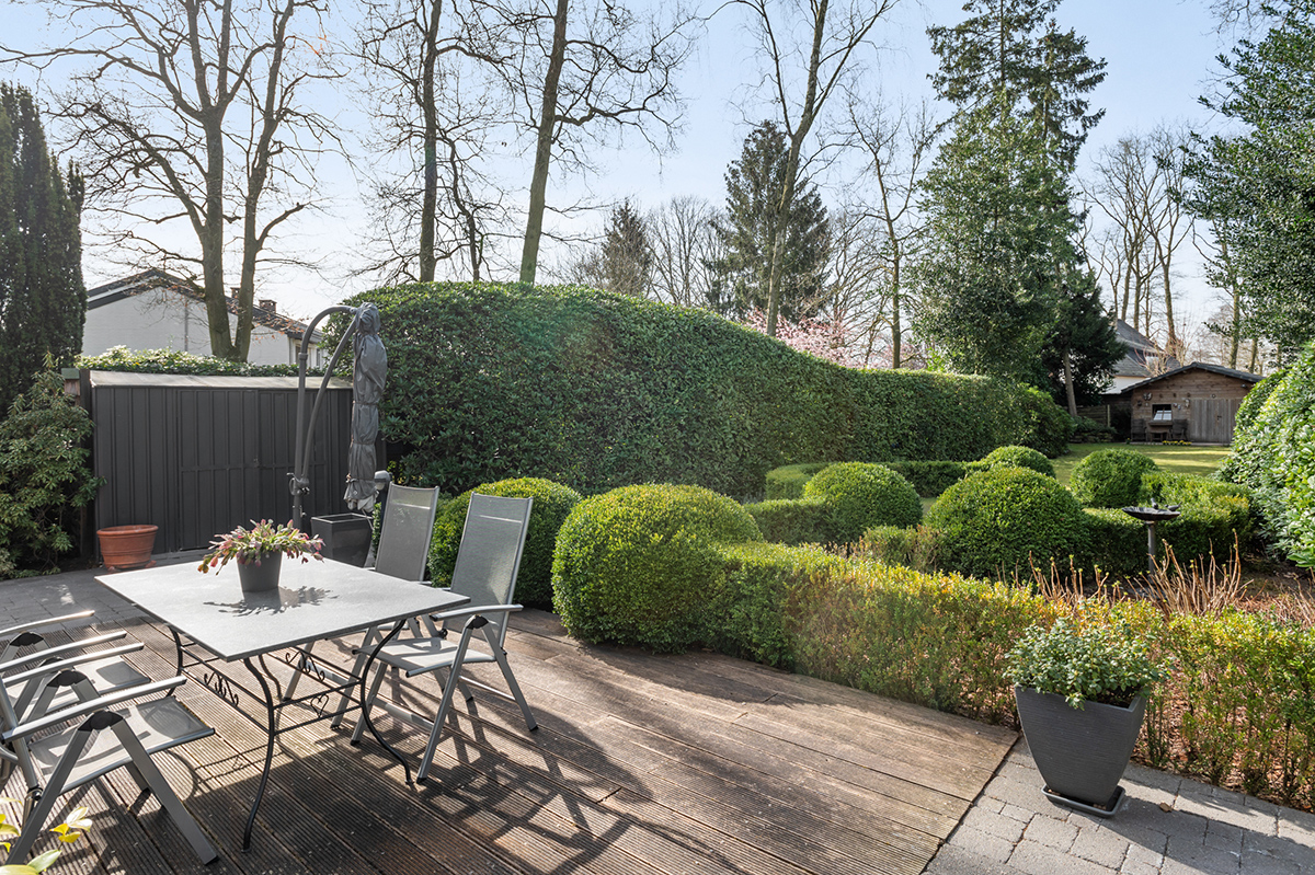 De woning beschikt over een prachtige, volwassen tuin, zuidwest georiënteerd, met terras. Achteraan in de tuin bevindt er zich nog een ruim tuinhuis, welk u heel wat opbergmogelijkheden biedt.