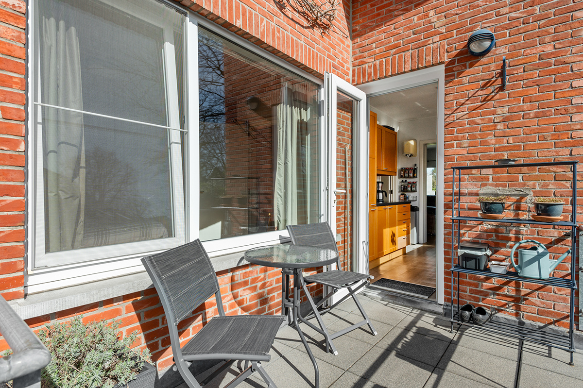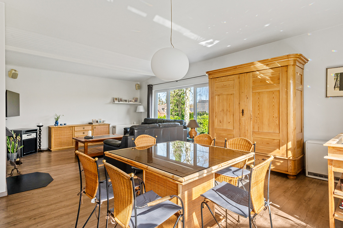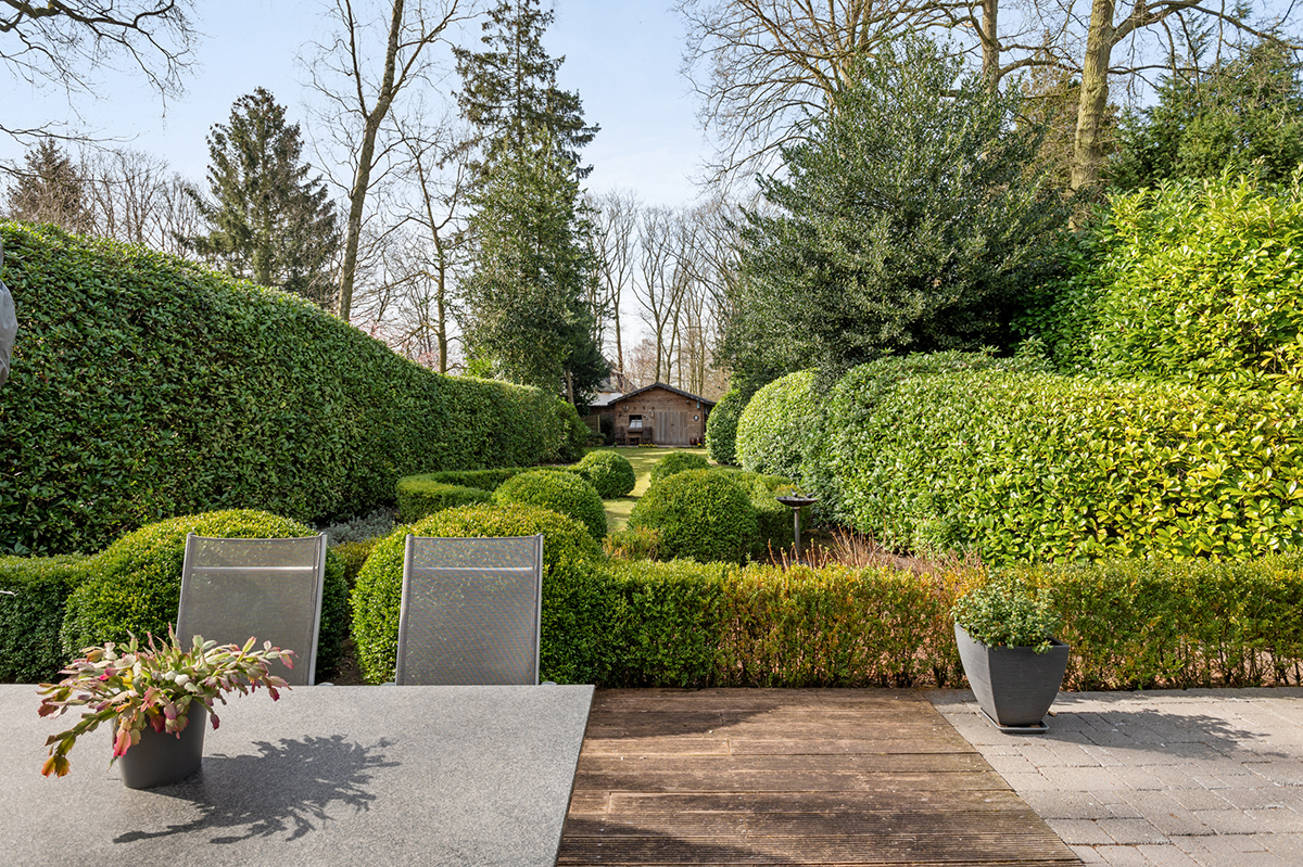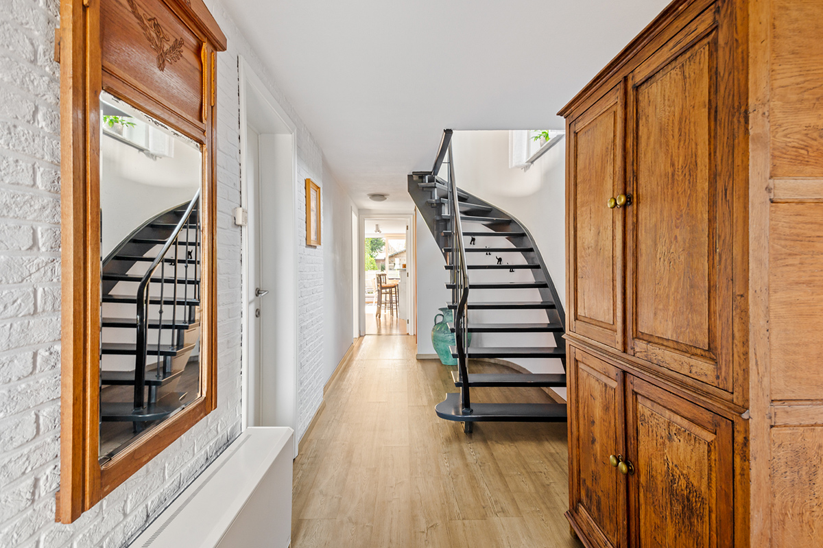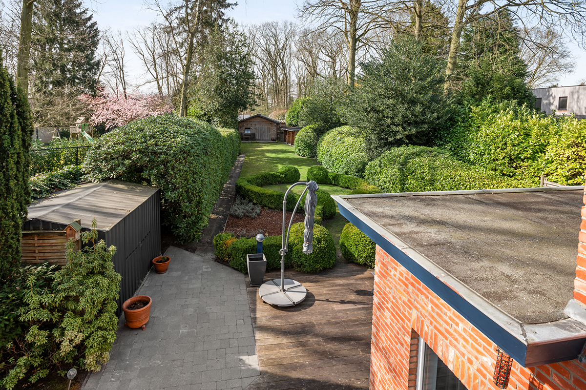 Aansluitend aan de keuken vinden we op de eerste verdieping ook nog een terras met trap richting de tuin.